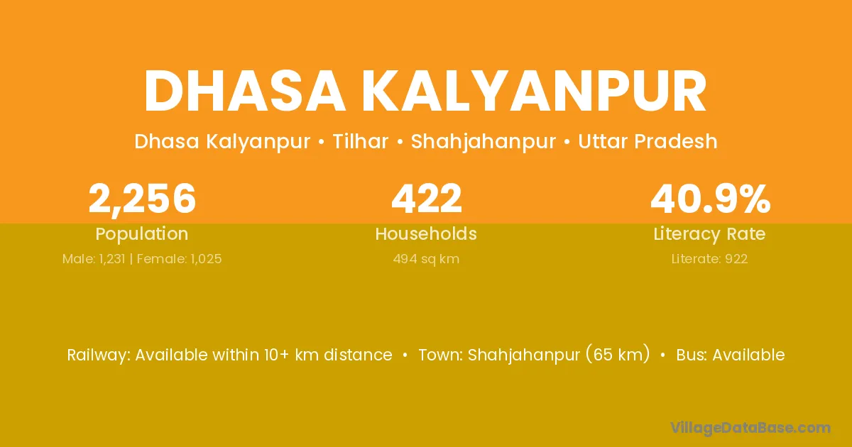 Shahjahanpur (65 km) is the nearest town to Dhasa Kalyanpur village for major economic activities and is located approximately 65 km away.