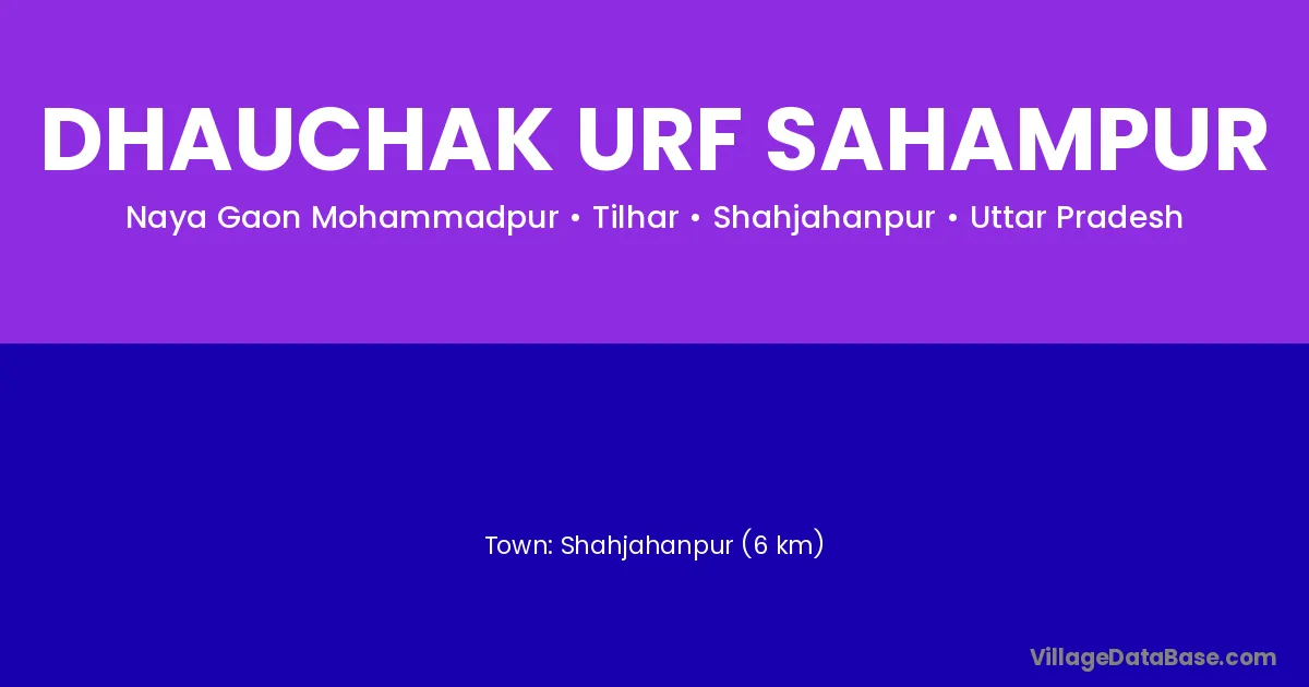 Shahjahanpur (6 km) is the nearest town to Dhauchak Urf Sahampur village for major economic activities and is located approximately 6 km away.