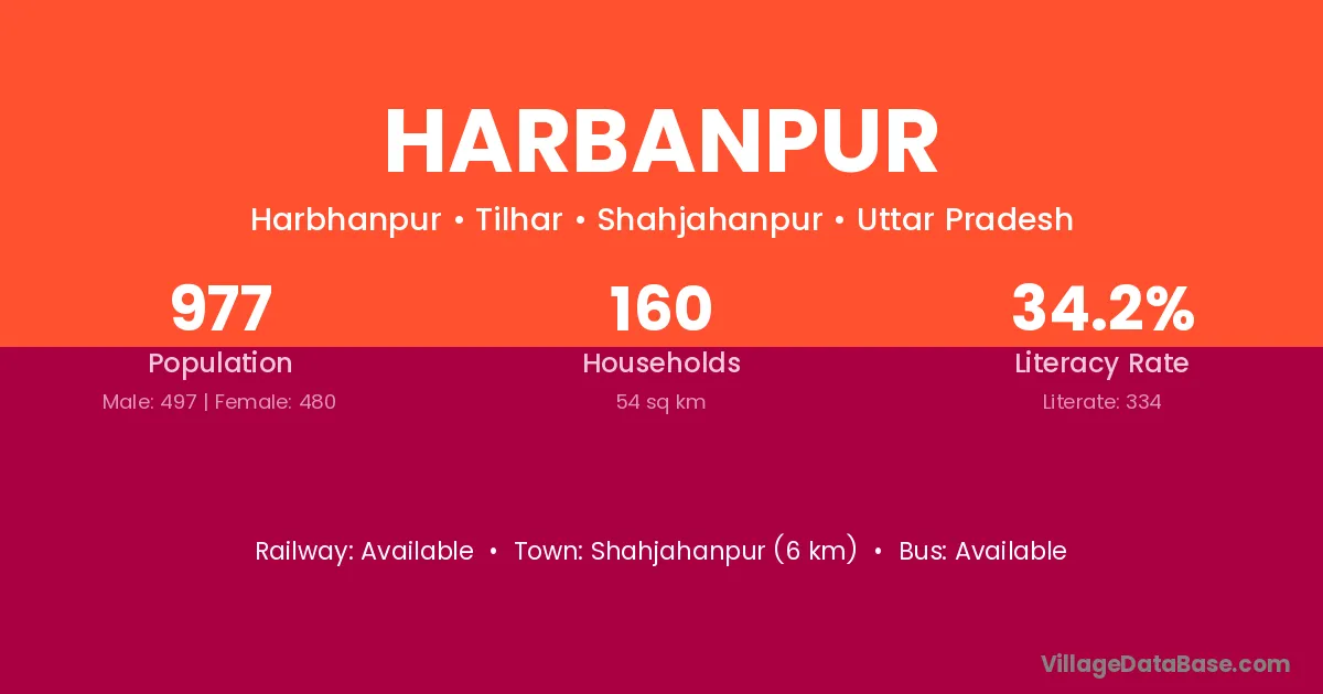 Shahjahanpur (6 km) is the nearest town to Harbanpur village for major economic activities and is located approximately 6 km away.