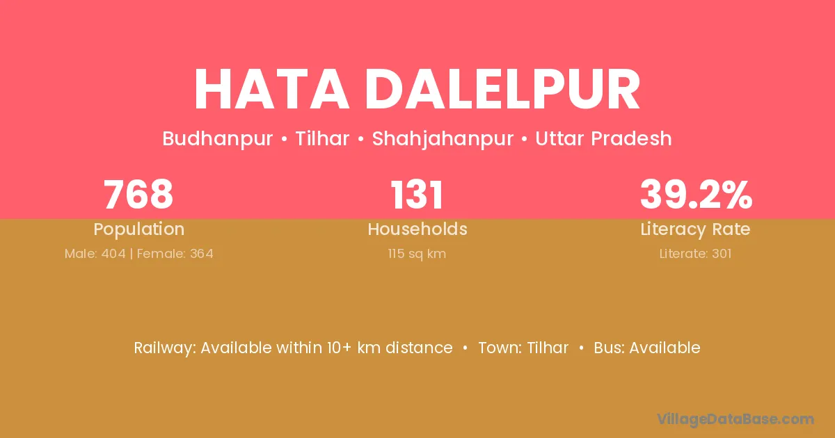 Hata Dalelpur village has a total population of 768 people, of which 404 are males and 364 are females.