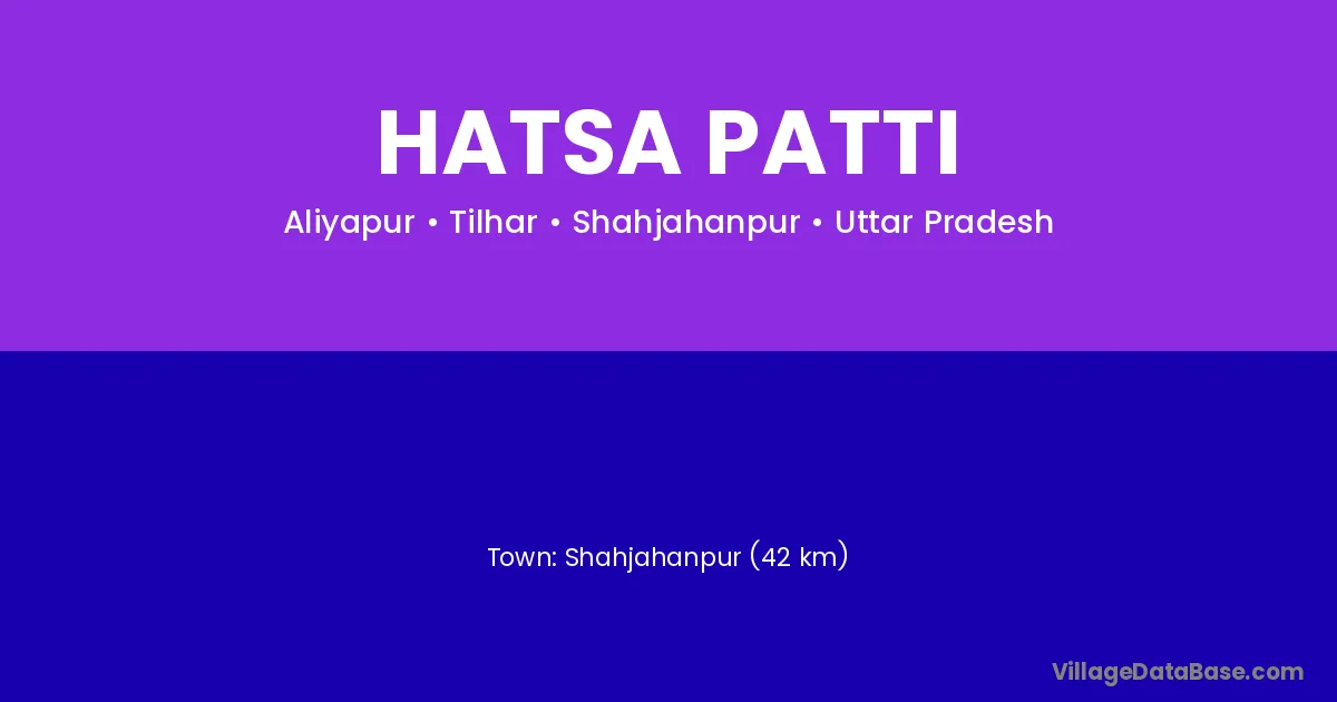 Shahjahanpur (42 km) is the nearest town to Hatsa Patti village for major economic activities and is located approximately 42 km away.