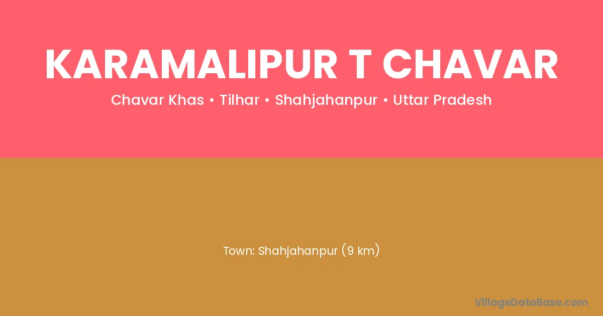 Shahjahanpur (9 km) is the nearest town to Karamalipur T Chavar village for major economic activities and is located approximately 9 km away.