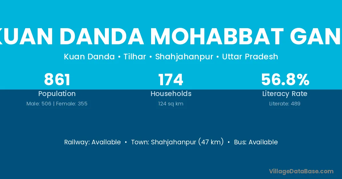Kuan Danda Mohabbat Ganj village has a total population of 861 people, of which 506 are males and 355 are females.