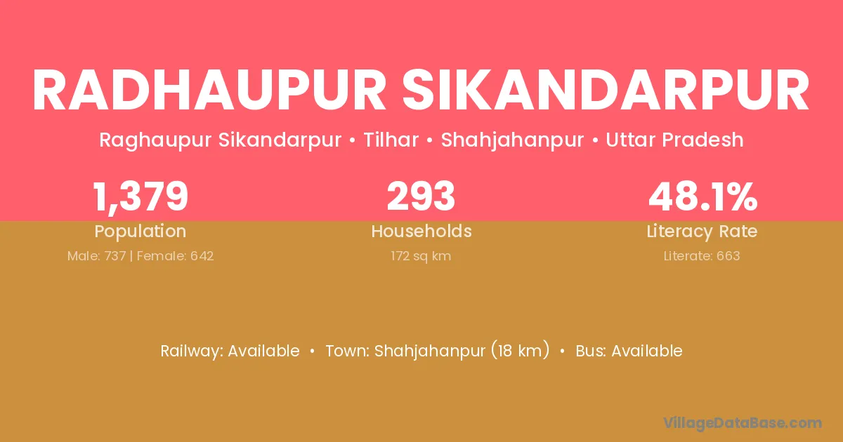 Radhaupur Sikandarpur village has a total population of 1,379 people, of which 737 are males and 642 are females.