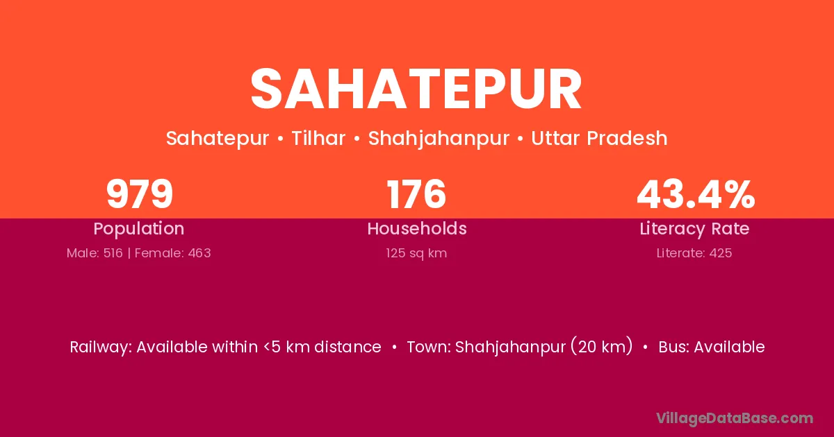 Shahjahanpur (20 km) is the nearest town to Sahatepur village for major economic activities and is located approximately 20 km away.