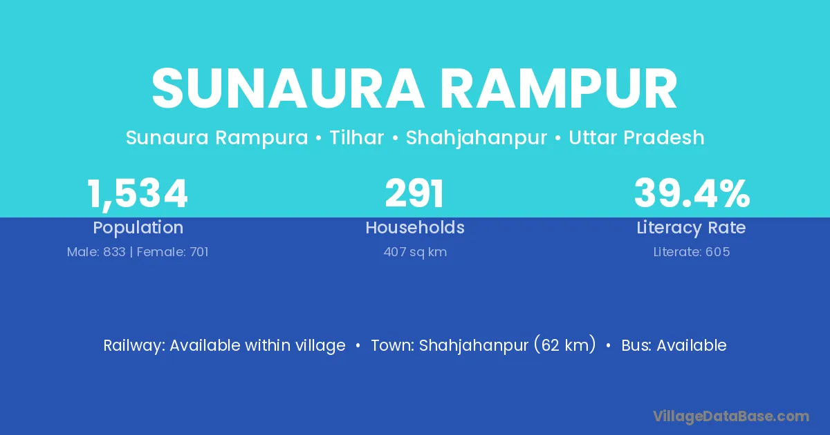 Shahjahanpur (62 km) is the nearest town to Sunaura Rampur village for major economic activities and is located approximately 62 km away.