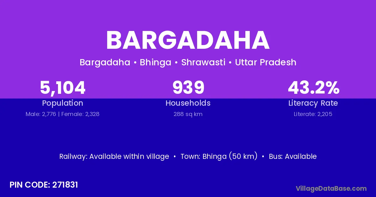 Bhinga (50 km) is the nearest town to Bargadaha village for major economic activities and is located approximately 50 km away.