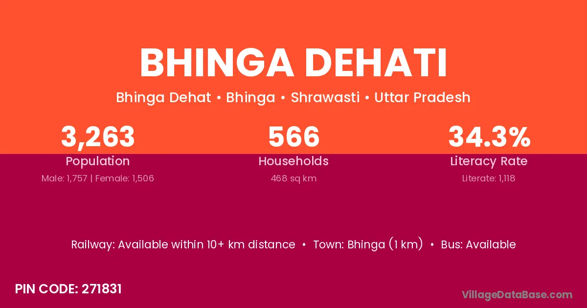 Bhinga (1 km) is the nearest town to Bhinga Dehati village for major economic activities and is located approximately 1 km away.