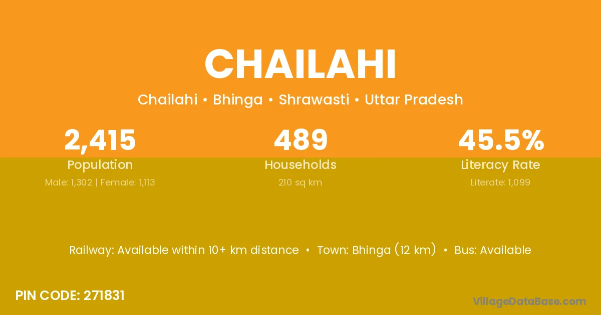 Bhinga (12 km) is the nearest town to Chailahi village for major economic activities and is located approximately 12 km away.