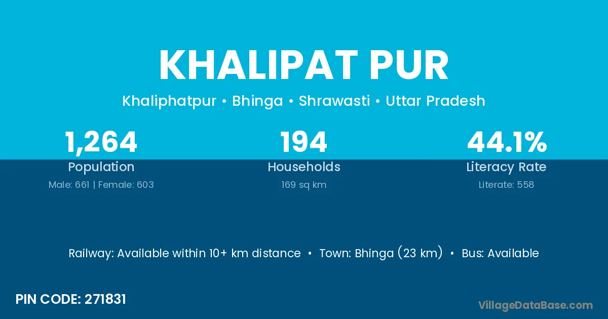 Bhinga (23 km) is the nearest town to Khalipat Pur village for major economic activities and is located approximately 23 km away.
