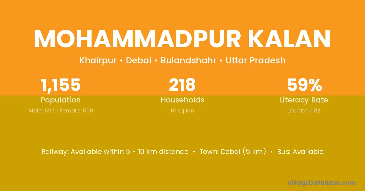 Bhinga (10 km) is the nearest town to Mohammadpur Kalan village for major economic activities and is located approximately 10 km away.