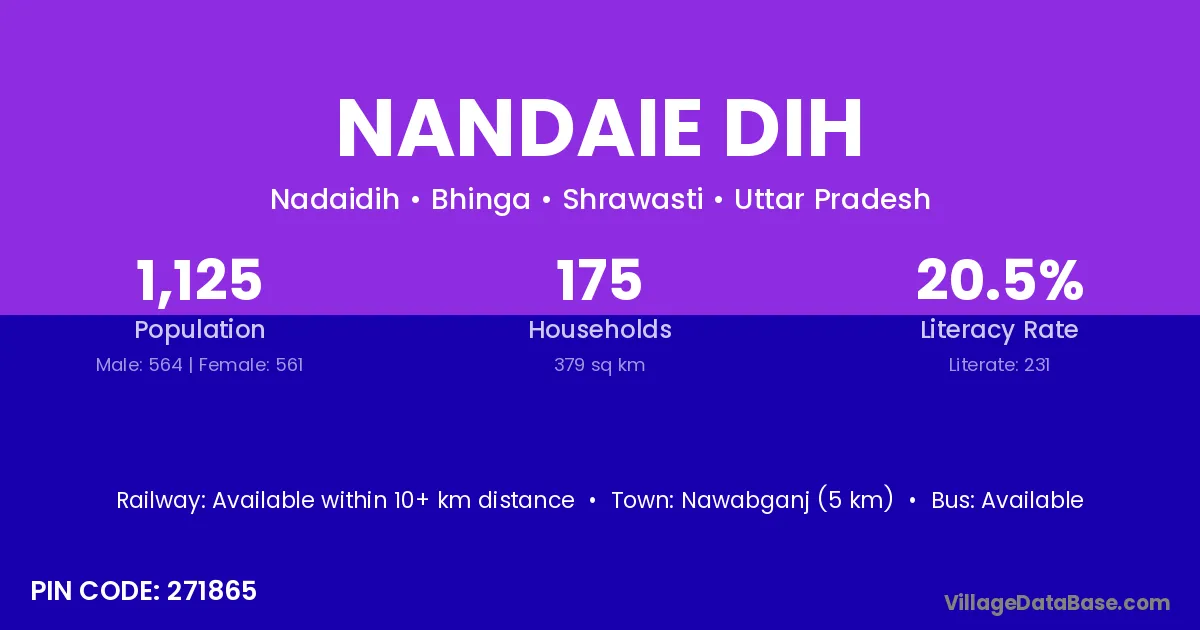 Nawabganj (5 km) is the nearest town to Nandaie Dih village for major economic activities and is located approximately 5 km away.