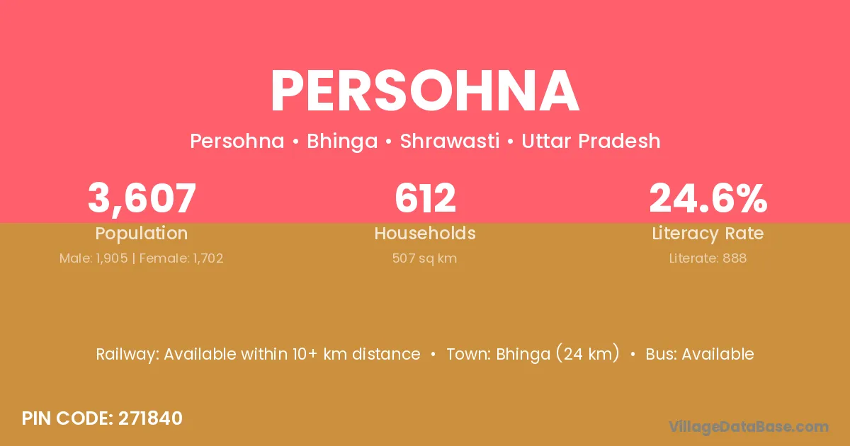 Bhinga (24 km) is the nearest town to Persohna village for major economic activities and is located approximately 24 km away.