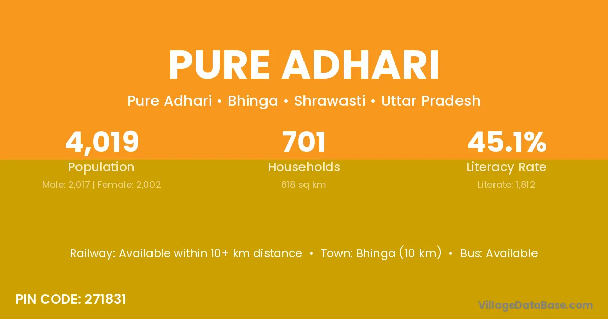 Bhinga (10 km) is the nearest town to Pure Adhari village for major economic activities and is located approximately 10 km away.