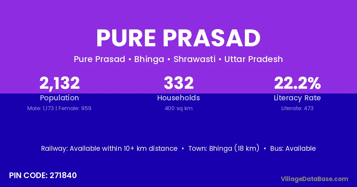 Bhinga (18 km) is the nearest town to Pure Prasad village for major economic activities and is located approximately 18 km away.