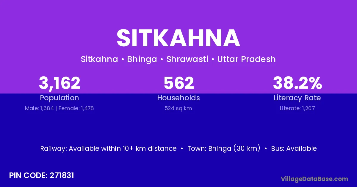 Bhinga (30 km) is the nearest town to Sitkahna village for major economic activities and is located approximately 30 km away.