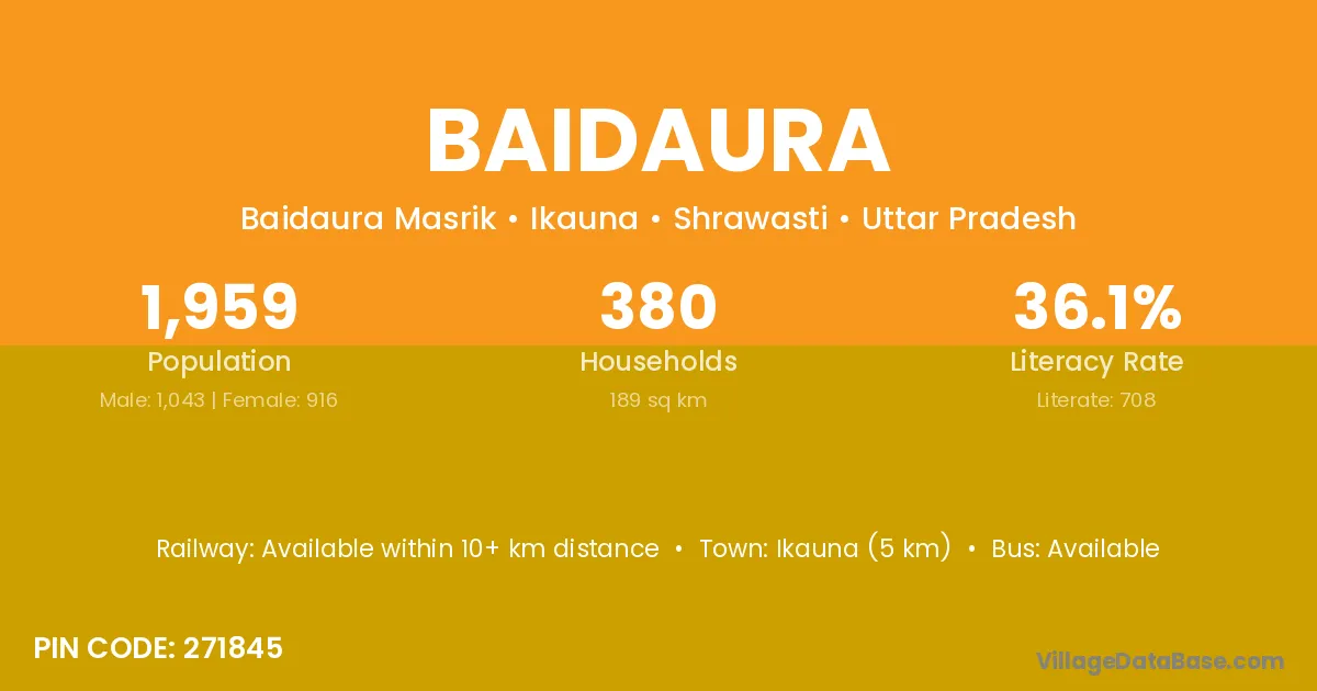 Ikauna (5 km) is the nearest town to Baidaura village for major economic activities and is located approximately 5 km away.