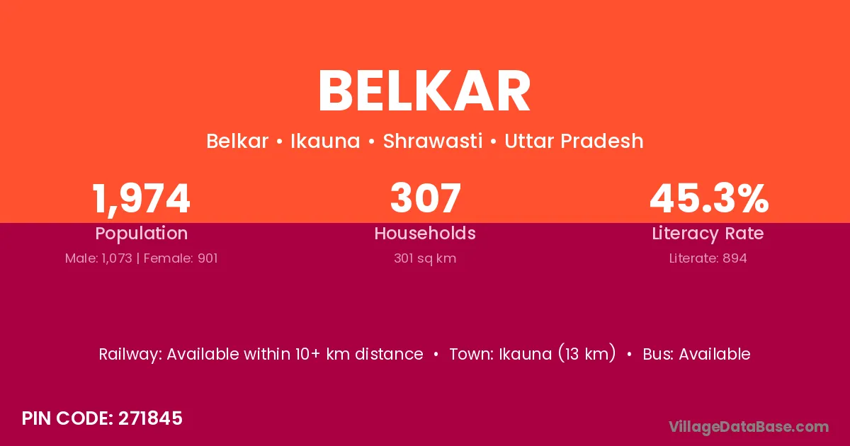 Ikauna (13 km) is the nearest town to Belkar village for major economic activities and is located approximately 13 km away.