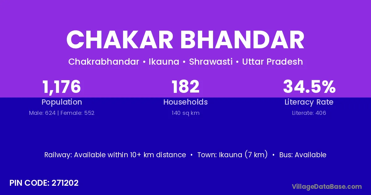 Ikauna (7 km) is the nearest town to Chakar Bhandar village for major economic activities and is located approximately 7 km away.