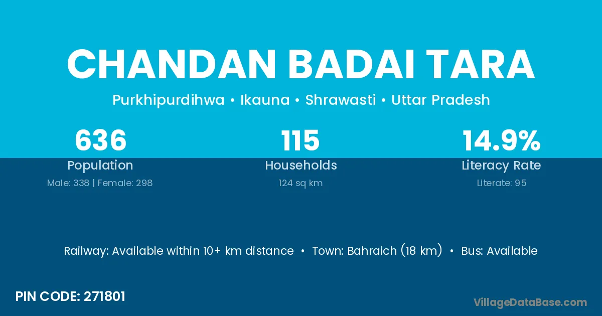 Bahraich (18 km) is the nearest town to Chandan Badai Tara village for major economic activities and is located approximately 18 km away.