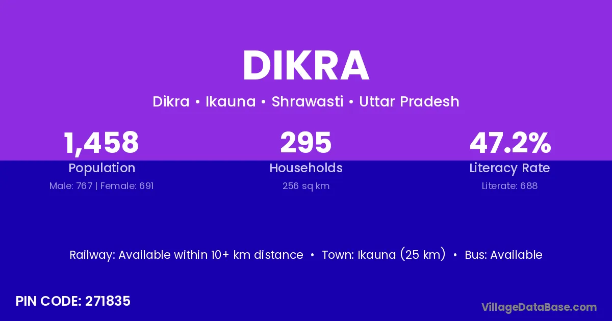 Dikra village is located in the Ikauna Tehsil of the Shrawasti district in Uttar Pradesh .