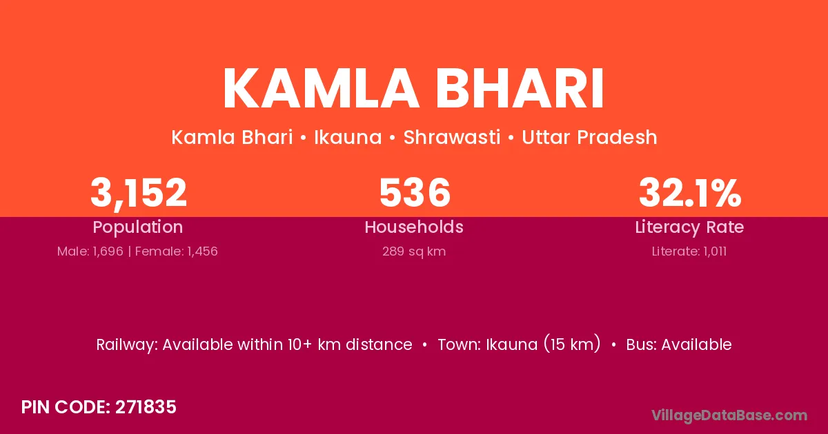 Ikauna (15 km) is the nearest town to Kamla Bhari village for major economic activities and is located approximately 15 km away.