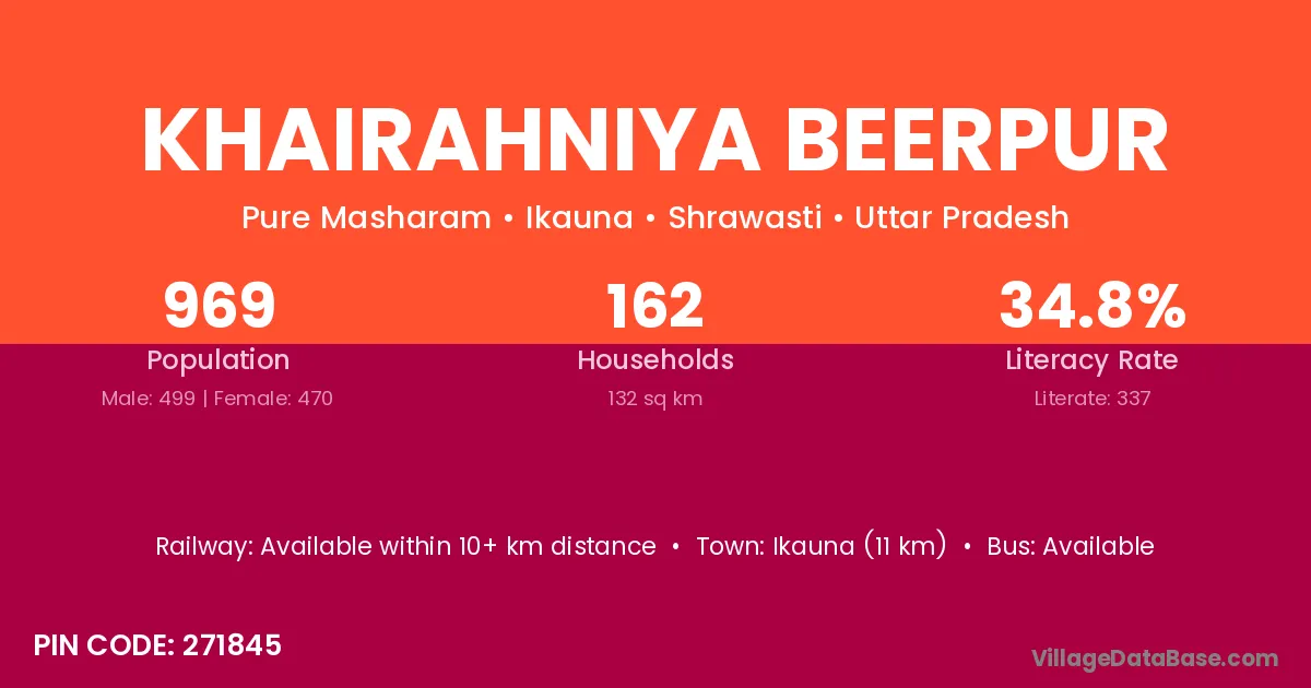 Khairahniya Beerpur village has a total population of 969 people, of which 499 are males and 470 are females.