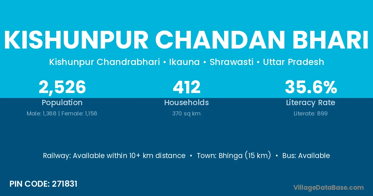 Bhinga (15 km) is the nearest town to Kishunpur Chandan Bhari village for major economic activities and is located approximately 15 km away.