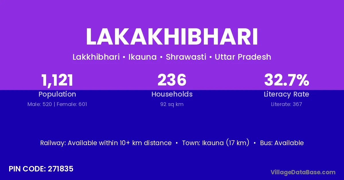 Ikauna (17 km) is the nearest town to Lakakhibhari village for major economic activities and is located approximately 17 km away.