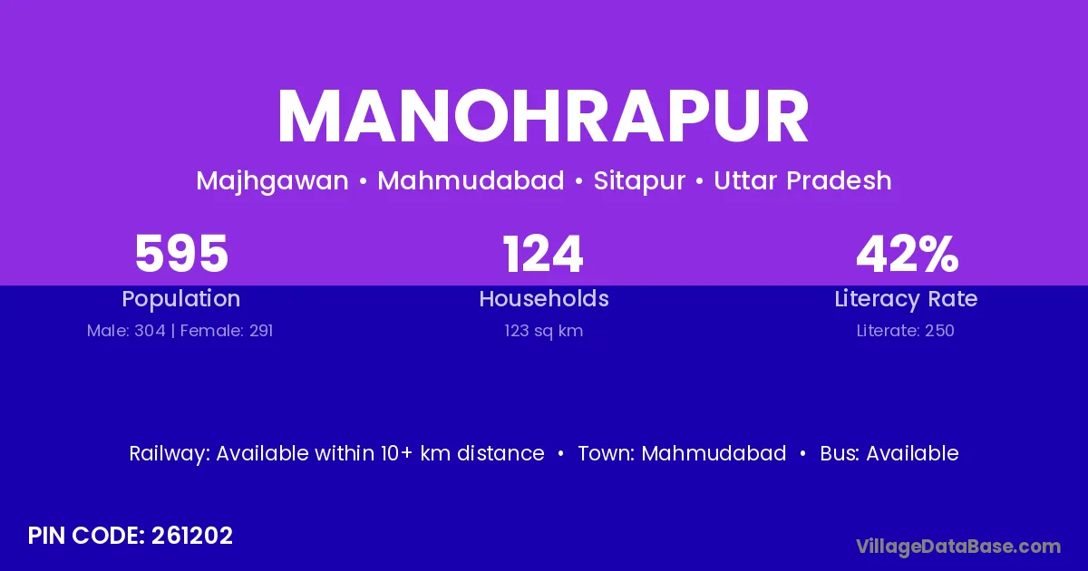 Bahraich (11 km) is the nearest town to Manohrapur village for major economic activities and is located approximately 11 km away.