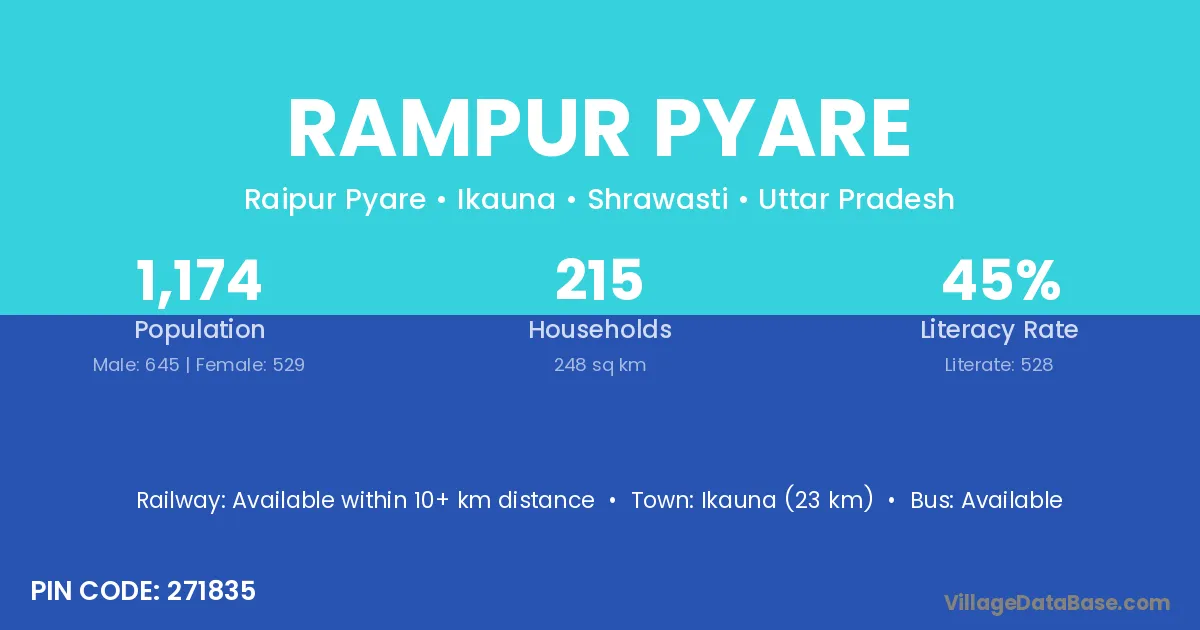 Rampur Pyare village has a total population of 1,174 people, of which 645 are males and 529 are females.