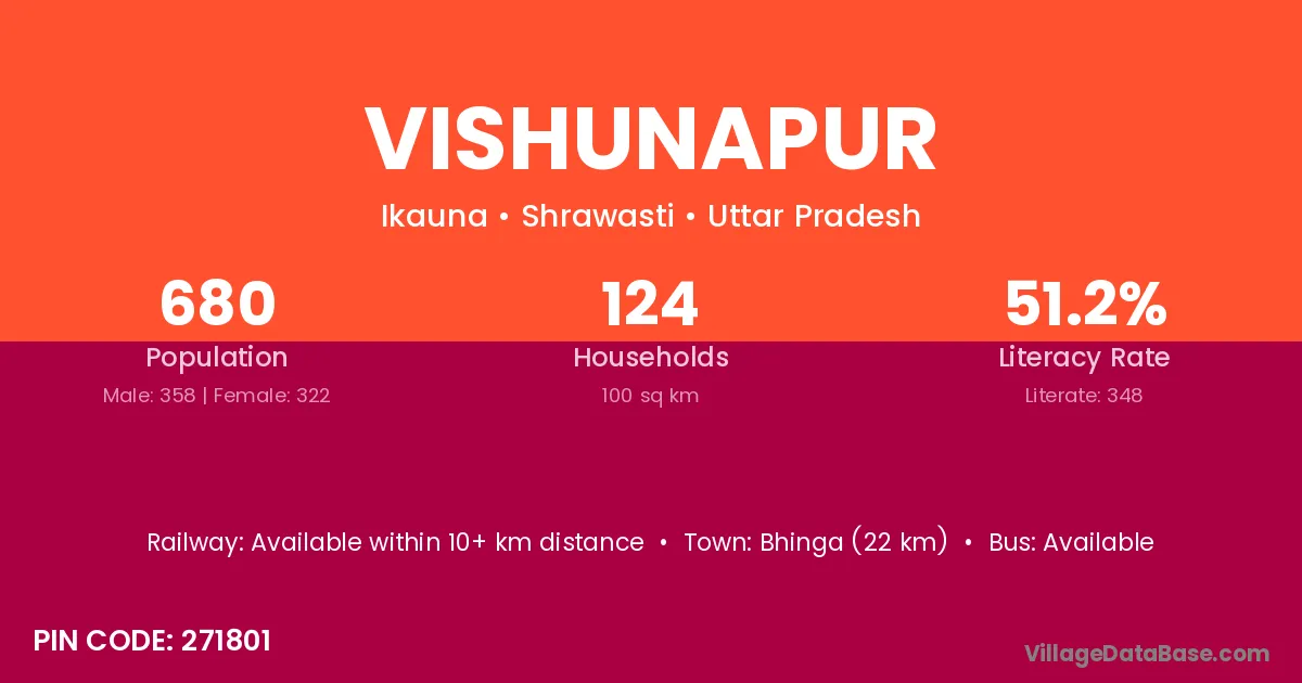 Bhinga (22 km) is the nearest town to Vishunapur village for major economic activities and is located approximately 22 km away.