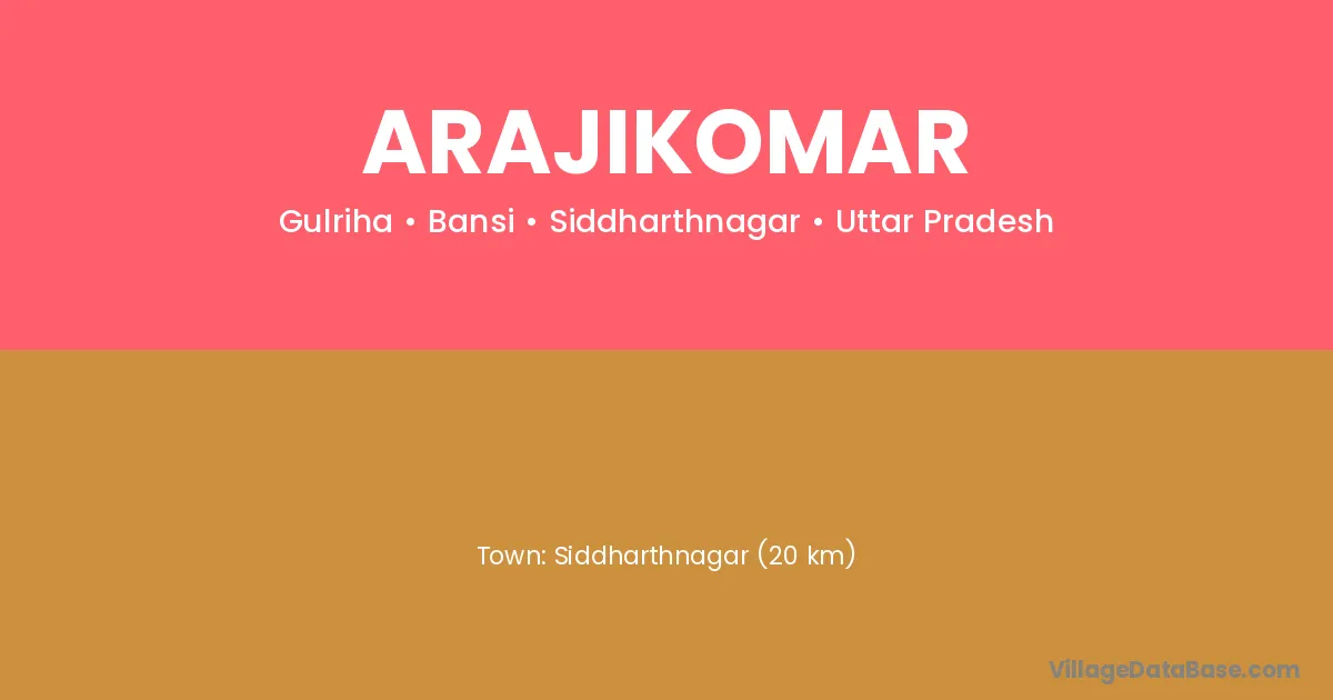 Siddharthnagar (20 km) is the nearest town to Arajikomar village for major economic activities and is located approximately 20 km away.