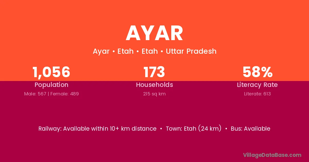 Siddharthnagar (22 km) is the nearest town to Ayar village for major economic activities and is located approximately 22 km away.