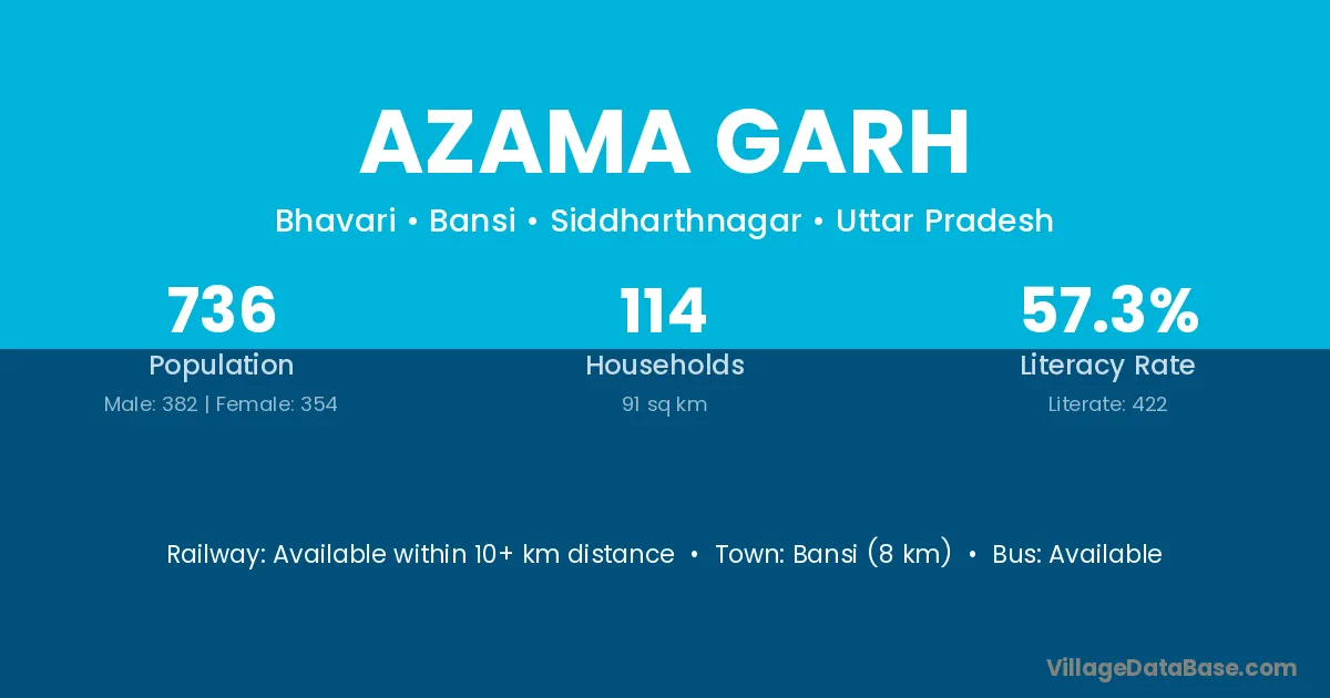 Bansi (8 km) is the nearest town to Azama Garh village for major economic activities and is located approximately 8 km away.