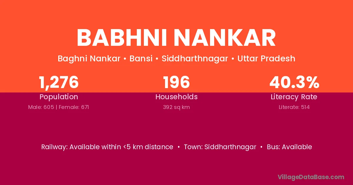Babhni Nankar village has a total population of 1,276 people, of which 605 are males and 671 are females.
