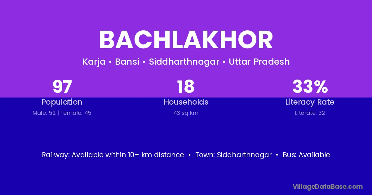 Siddharthnagar is the nearest town to Bachlakhor village for major economic activities