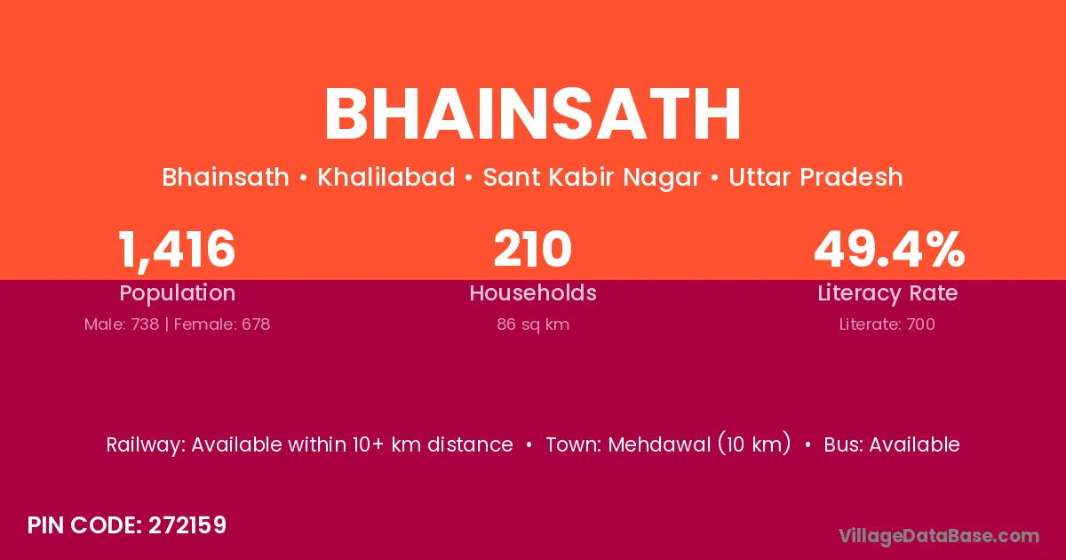 Siddharthnagar (5 km) is the nearest town to Bhainsath village for major economic activities and is located approximately 5 km away.