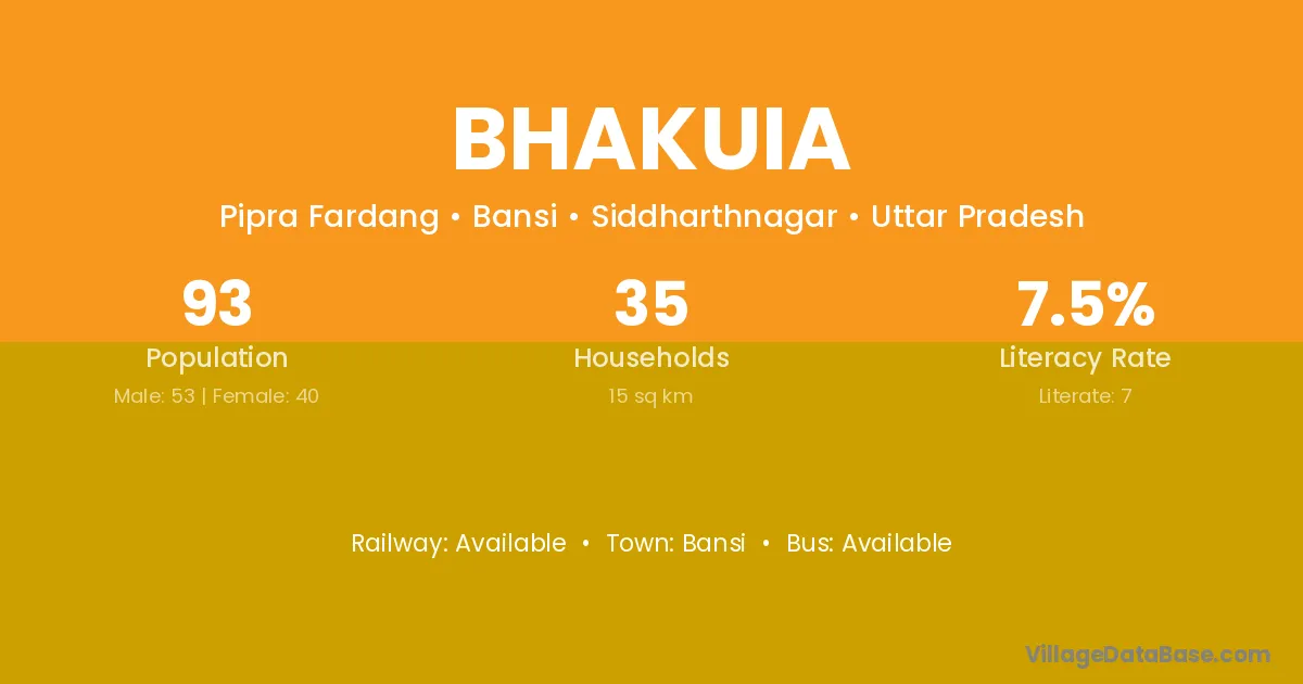 Bhakuia village has a total population of 93 people, of which 53 are males and 40 are females.