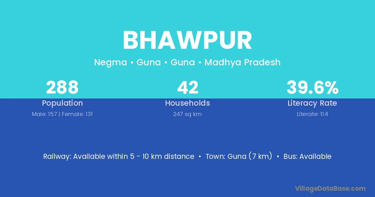 The literacy rate of Bhawpur village is 52.48%. Male literacy stands at 66.12% and female literacy at 39.96%.