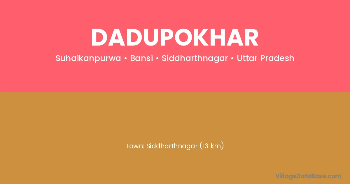 Siddharthnagar (13 km) is the nearest town to Dadupokhar village for major economic activities and is located approximately 13 km away.