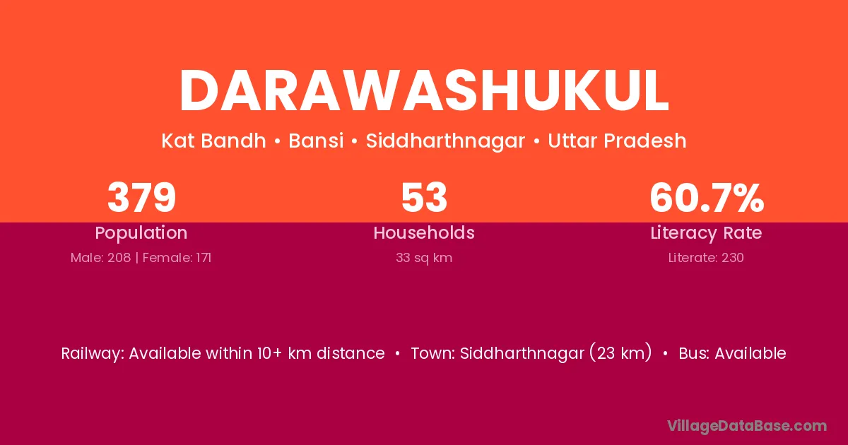 Darawashukul village has a total population of 379 people, of which 208 are males and 171 are females.