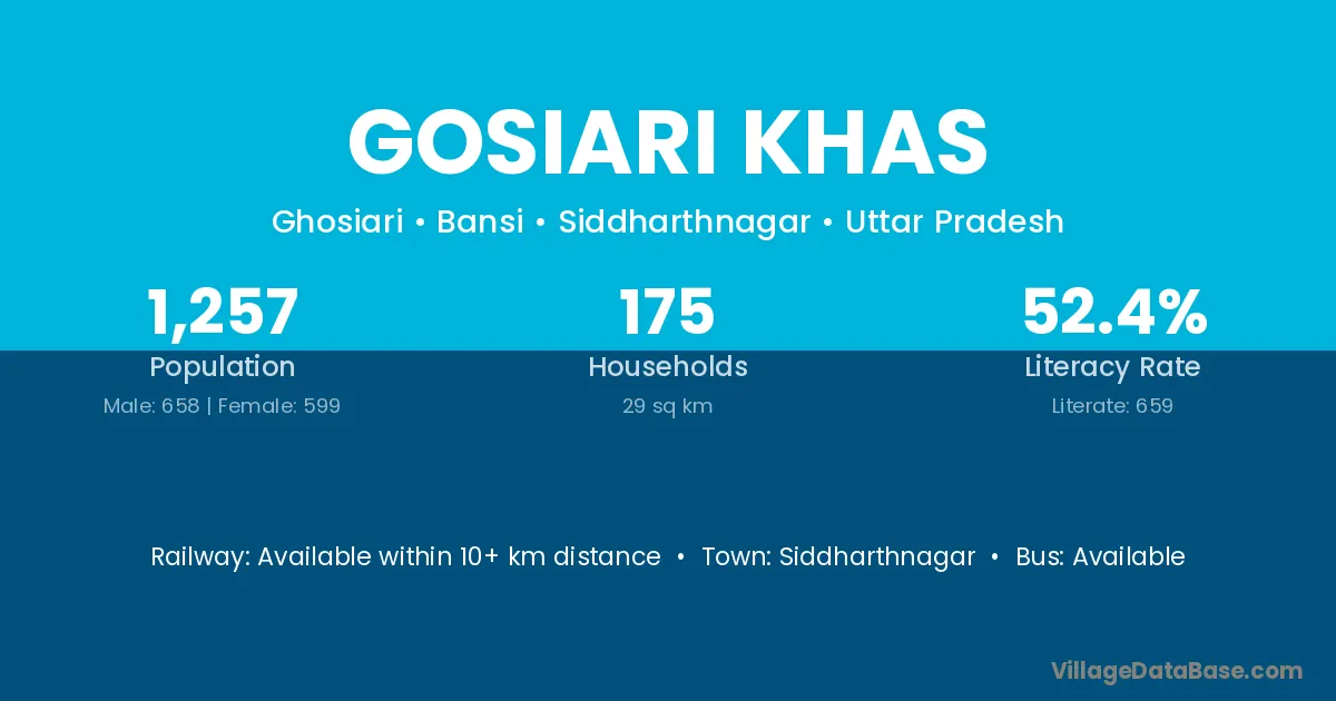Siddharthnagar is the nearest town to Gosiari Khas village for major economic activities