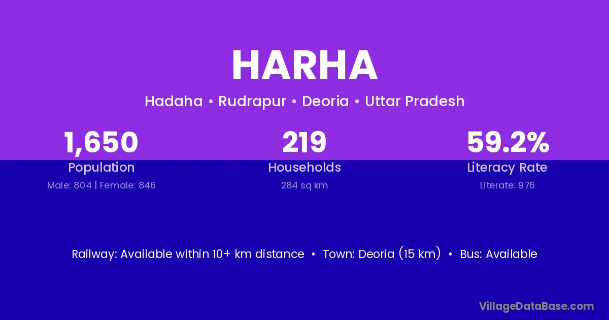 Siddharthnagar (2 km) is the nearest town to Harha village for major economic activities and is located approximately 2 km away.