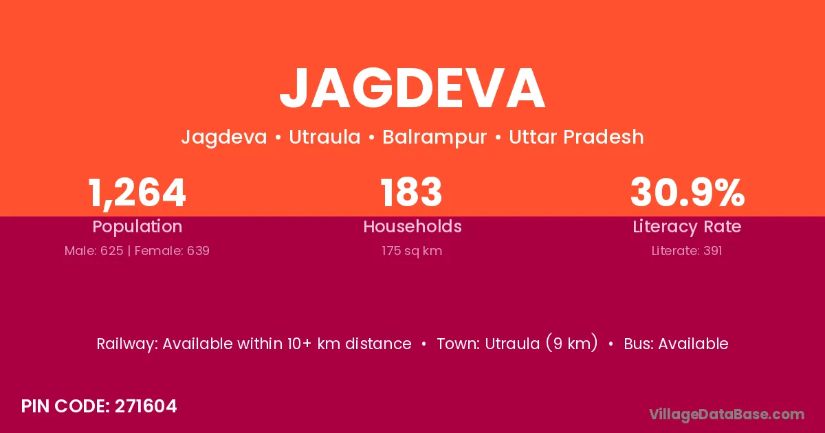 Siddharthnagar (10 km) is the nearest town to Jagdeva village for major economic activities and is located approximately 10 km away.