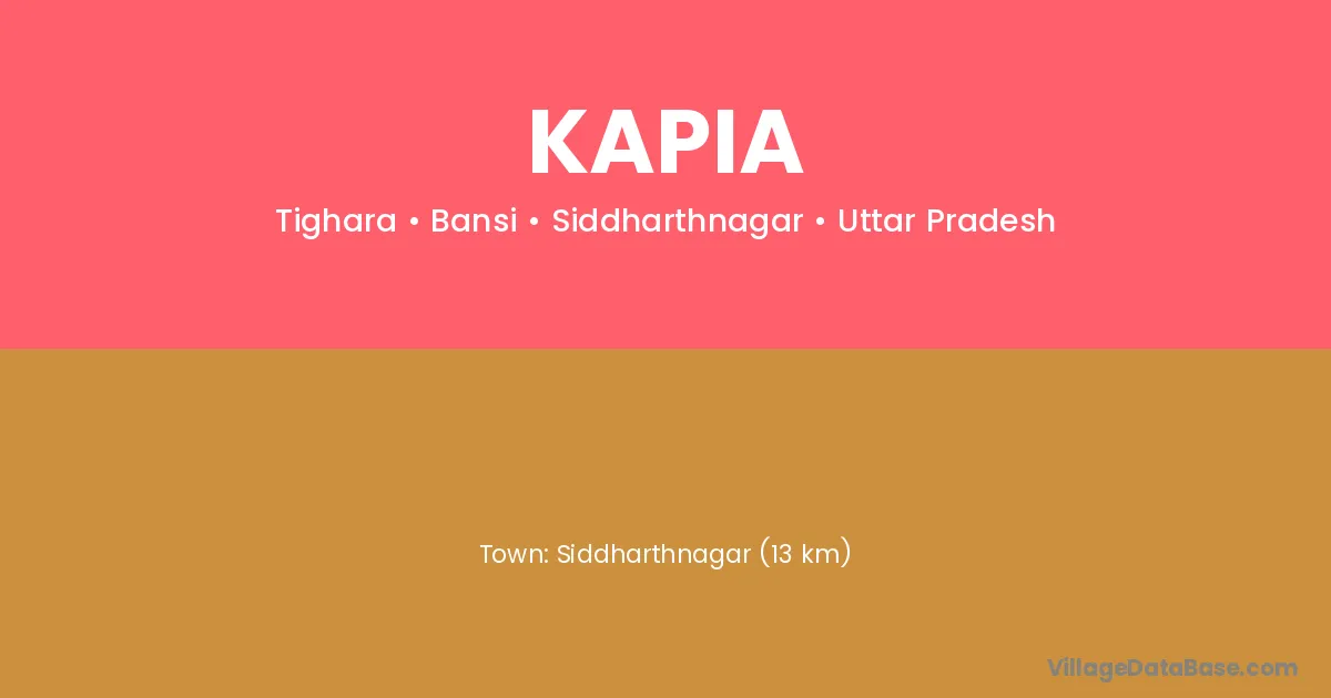 Siddharthnagar (13 km) is the nearest town to Kapia village for major economic activities and is located approximately 13 km away.