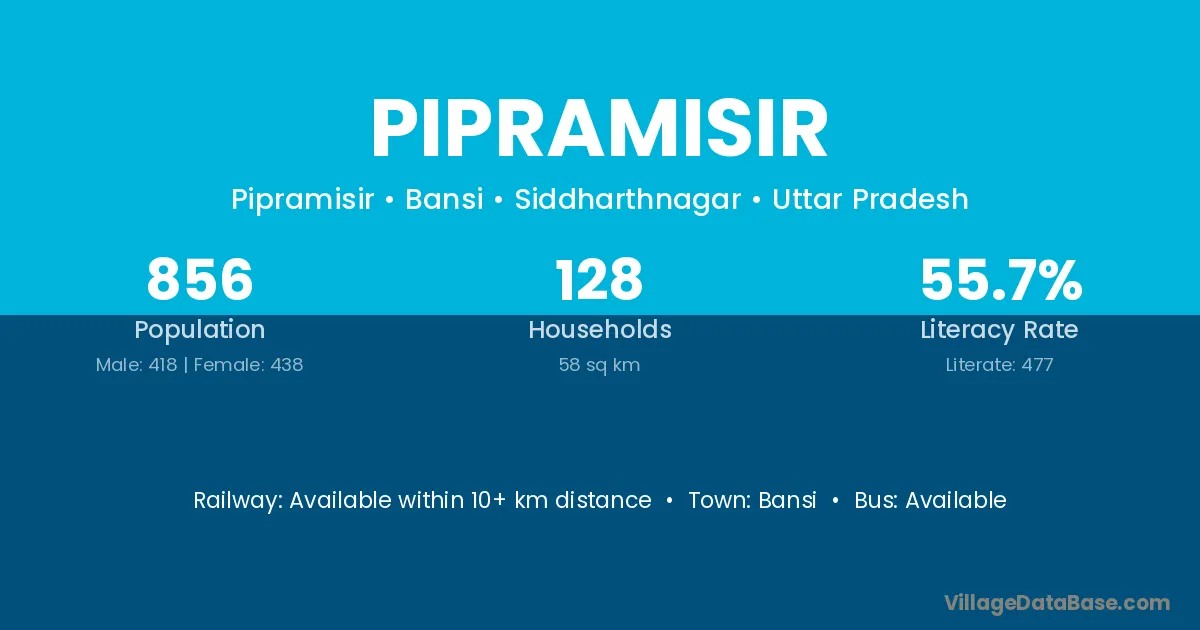 Pipramisir village has a total population of 856 people, of which 418 are males and 438 are females.