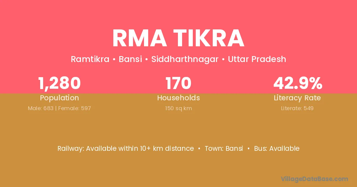 Rma Tikra village has a total population of 1,280 people, of which 683 are males and 597 are females.