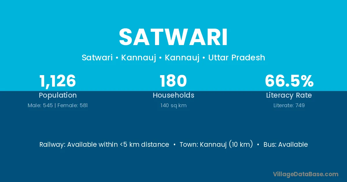 Siddharthnagar (14 km) is the nearest town to Satwari village for major economic activities and is located approximately 14 km away.