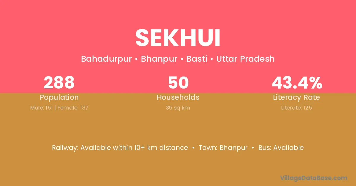 Siddharthnagar (23 km) is the nearest town to Sekhui village for major economic activities and is located approximately 23 km away.